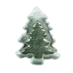 Transpac Ceramic Iridescent Holiday Tree Plates Set Of 2 For Christmas Dining Elegant Tableware