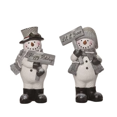 - Celebrate the holiday season with the Transpac Resin Gray Plaid Snowman Decor Set of 2, perfect for adding a festive touch to your home or as a charming gift for loved ones, featuring delightful multicolor snowman figurines that stand 10.25 inches tall.