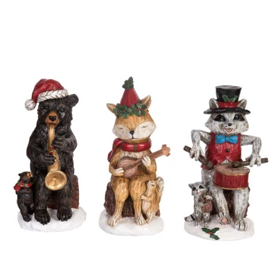 - Set of 3 large rustic music critter figurines made from durable resin, perfect for adding a whimsical touch to your home decor.