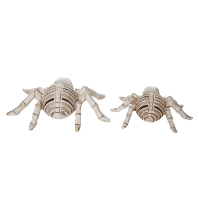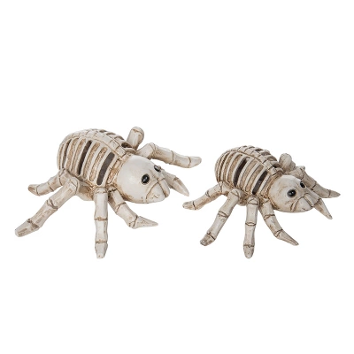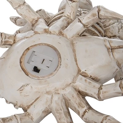 - Enhance your Halloween decor with this set of 2 offwhite lightup skeleton spiders, crafted from durable resin for indoor tabletop use, measuring 7.25″ in length and 2.5″ in height.