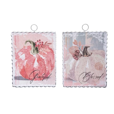 - Enhance your fall decor with the Transpac MDF/Metal/Paper Watercolor Pumpkin Wall Set of 2, featuring vibrant multicolor designs, perfect for indoor tabletop use, measuring 11.81″ x 11.81″ x 8.07″ and easy to clean with a simple wipe.